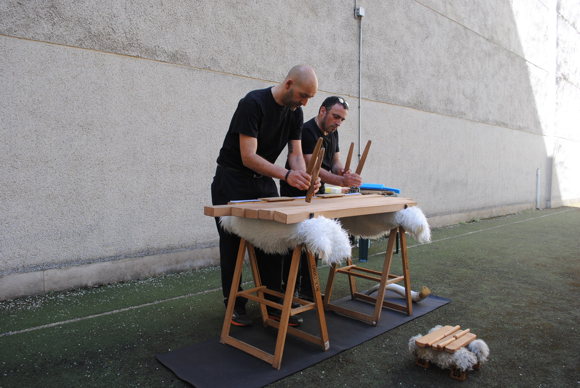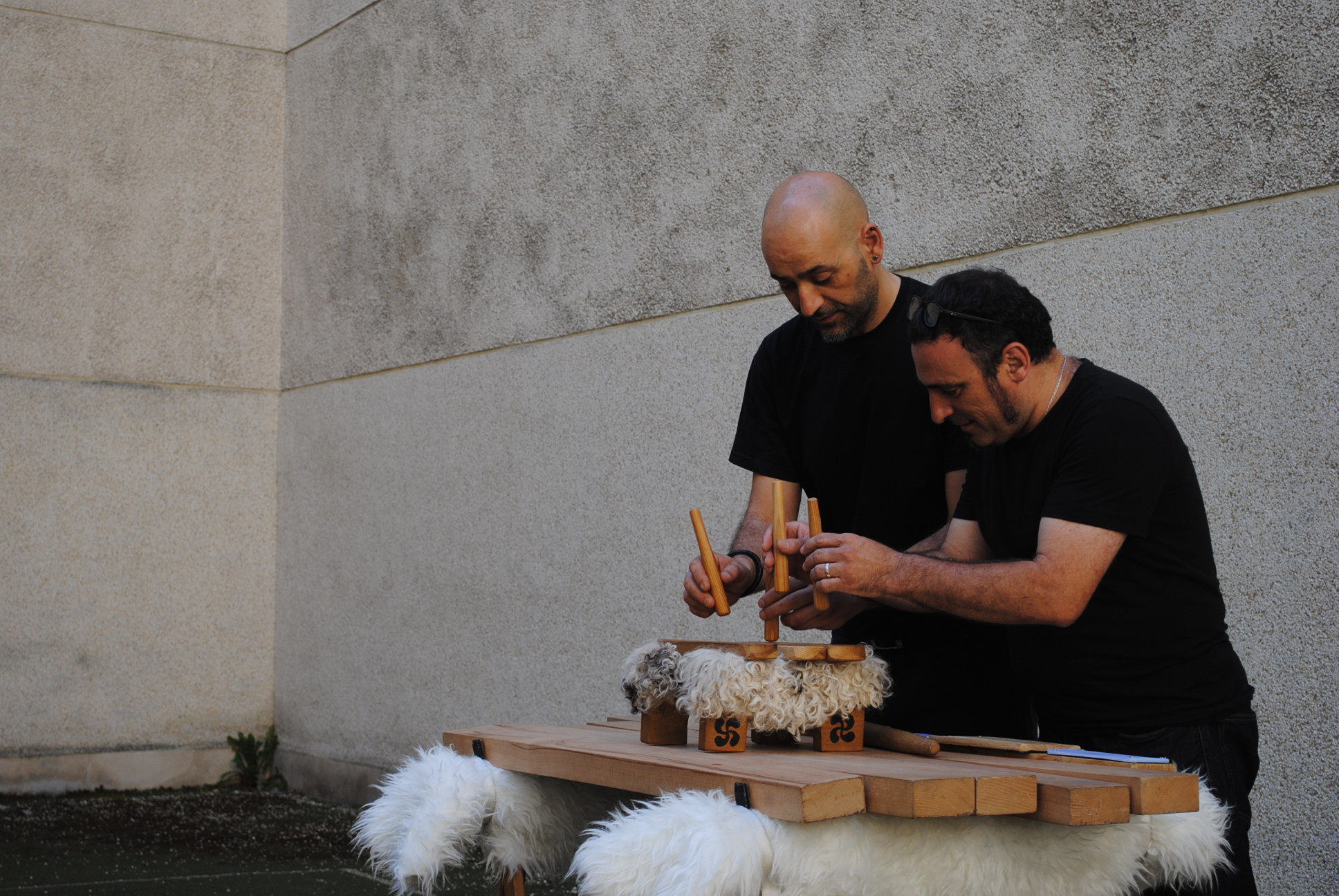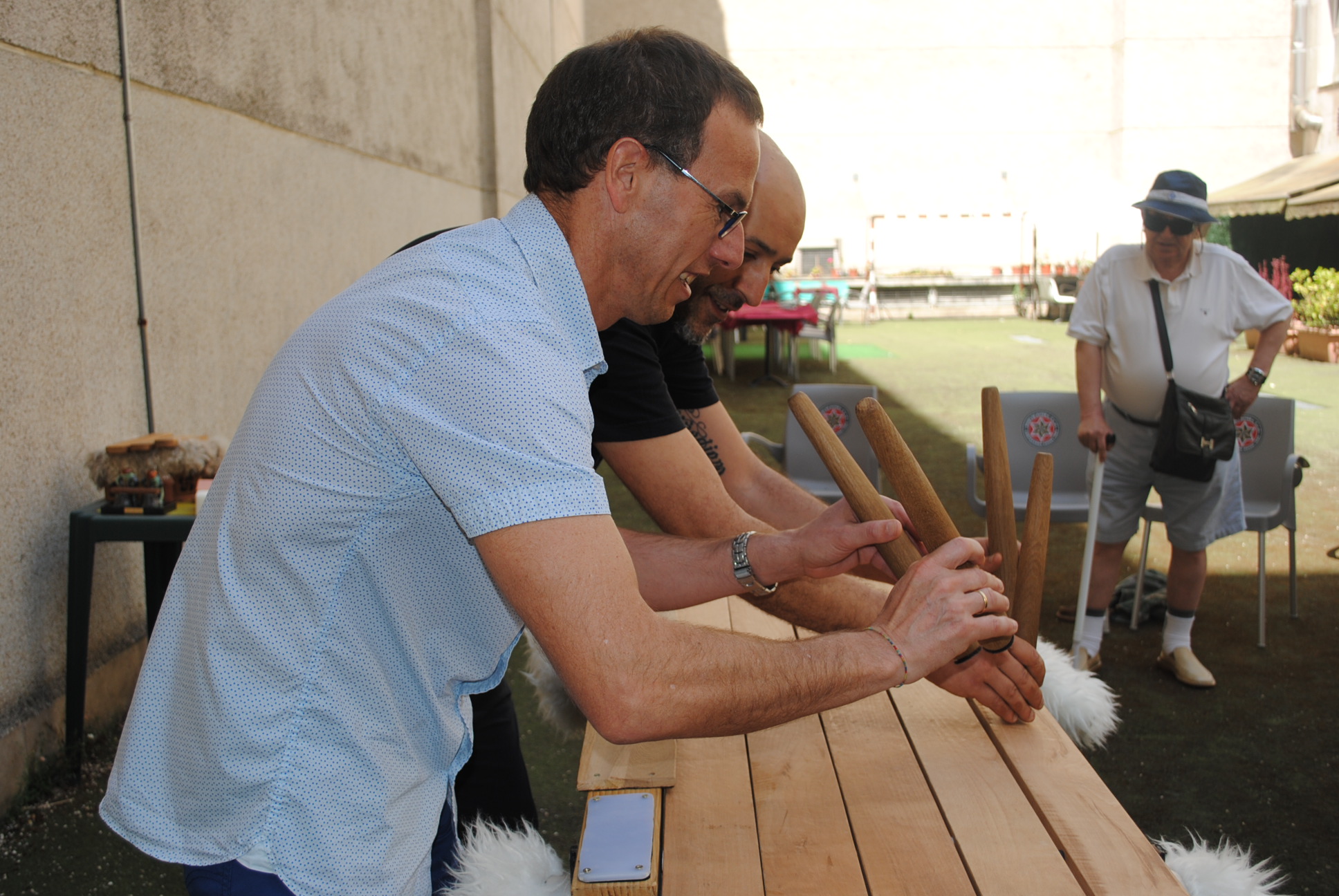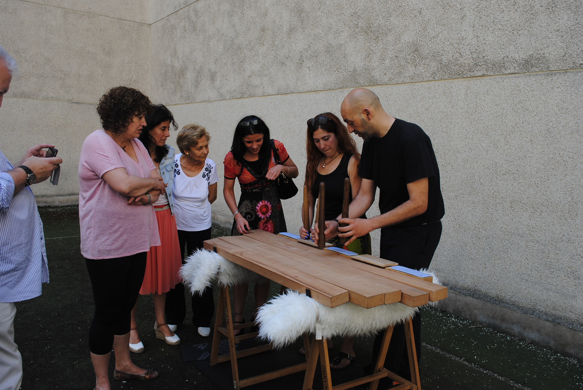3. Los participantes en el taller han tenido la ocasión de tocar la txalaparta con ayuda de Felix y Andeka.