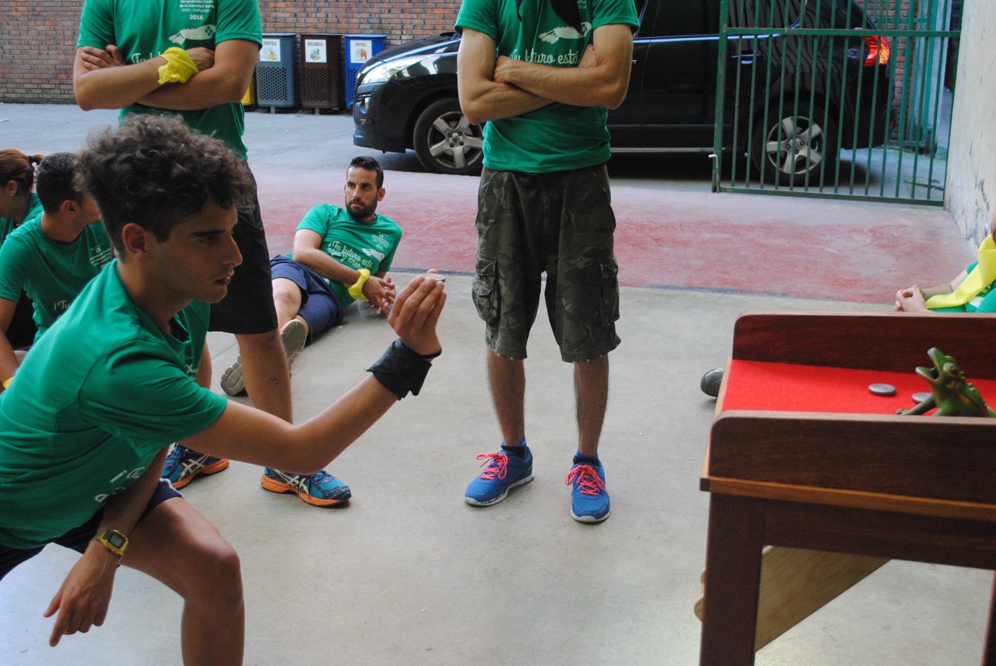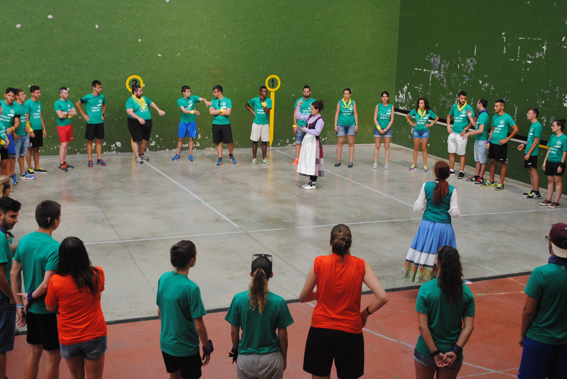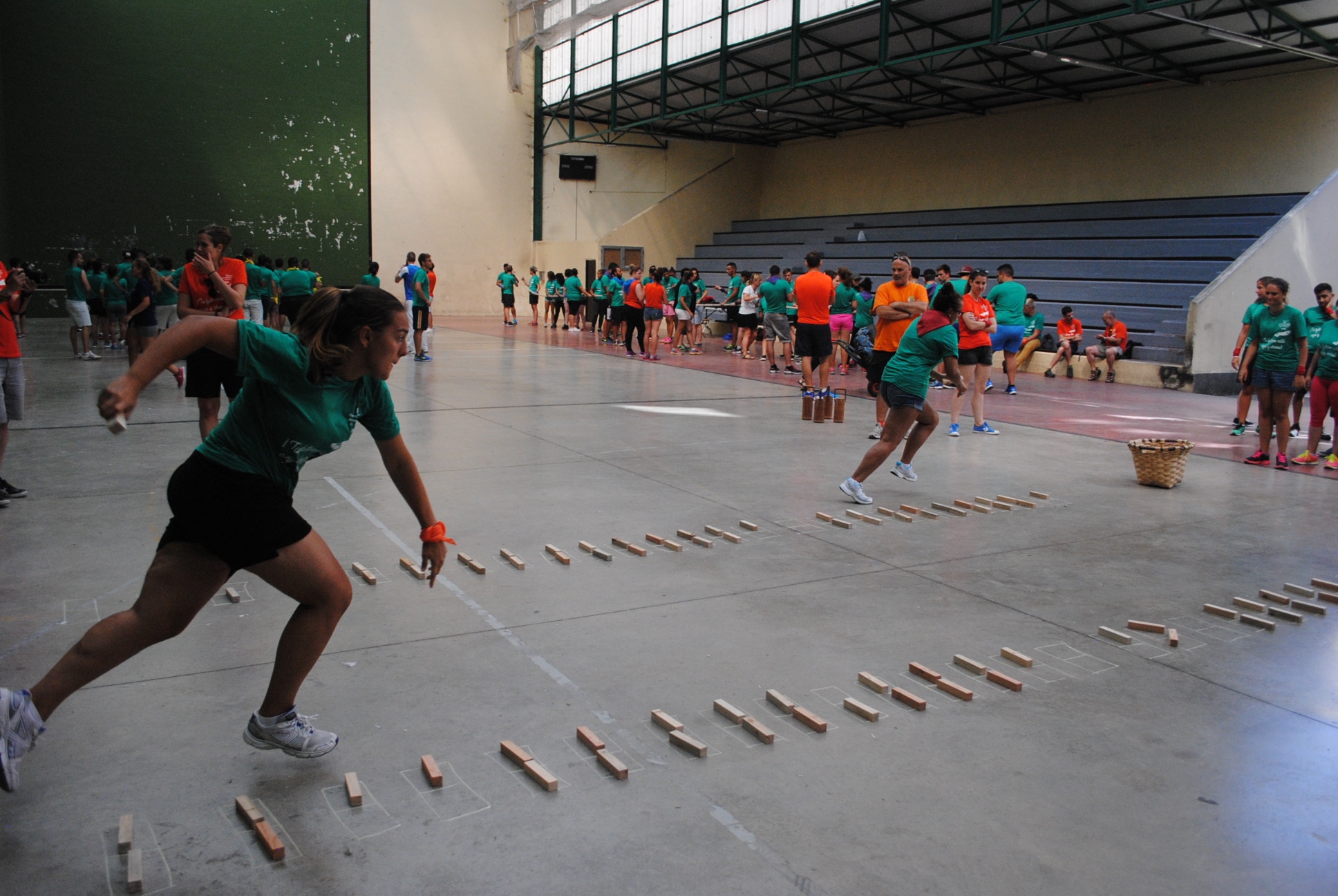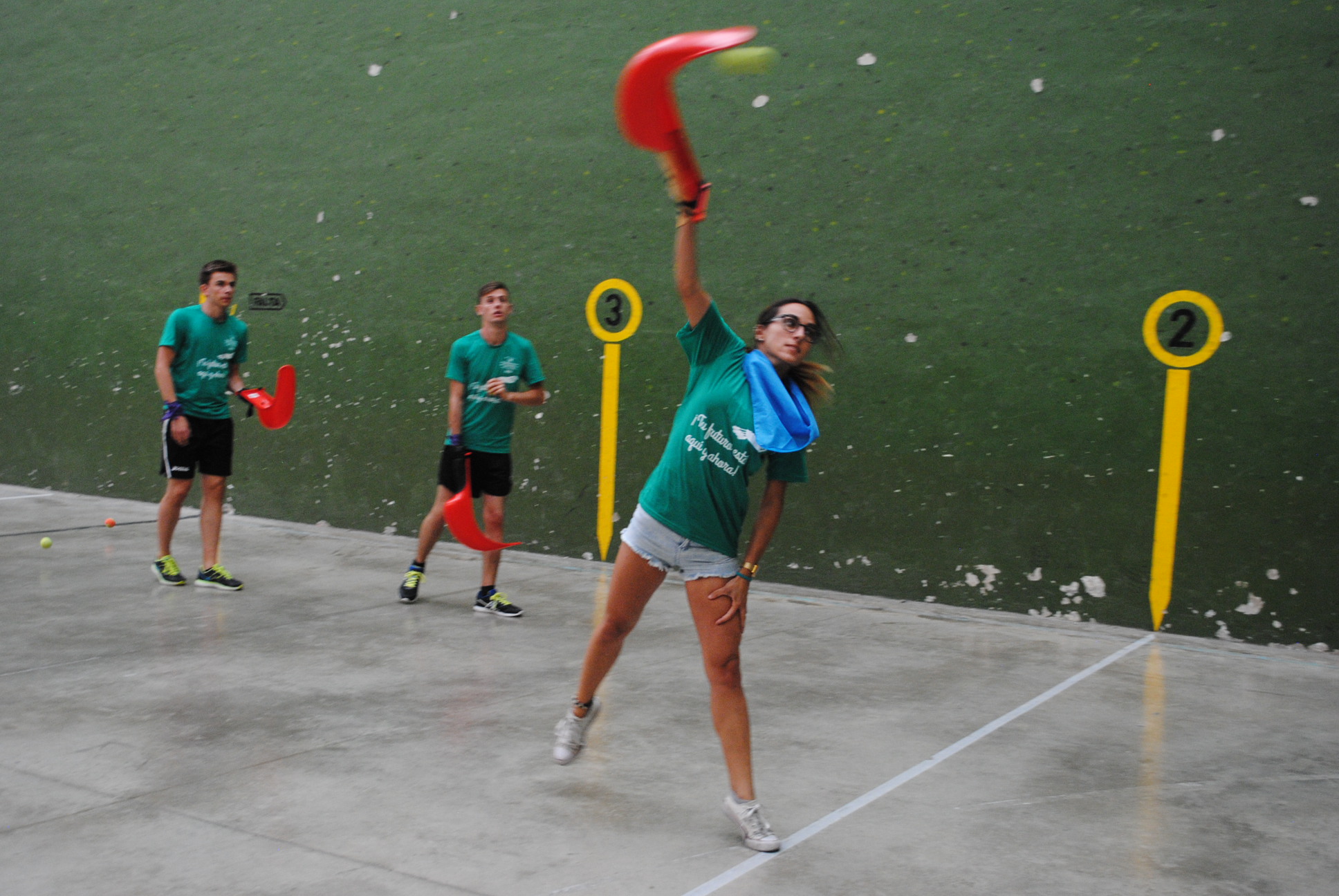 Tras la exhibición se organizaron en equipos y compitieron a distintos juegos de caserío y pelota vasca. Las txapelas estaban en juego y los chavales se lo tomaron muy en serio. Muy competitivos, muy entregados y luchadores. Segunda lección del día.