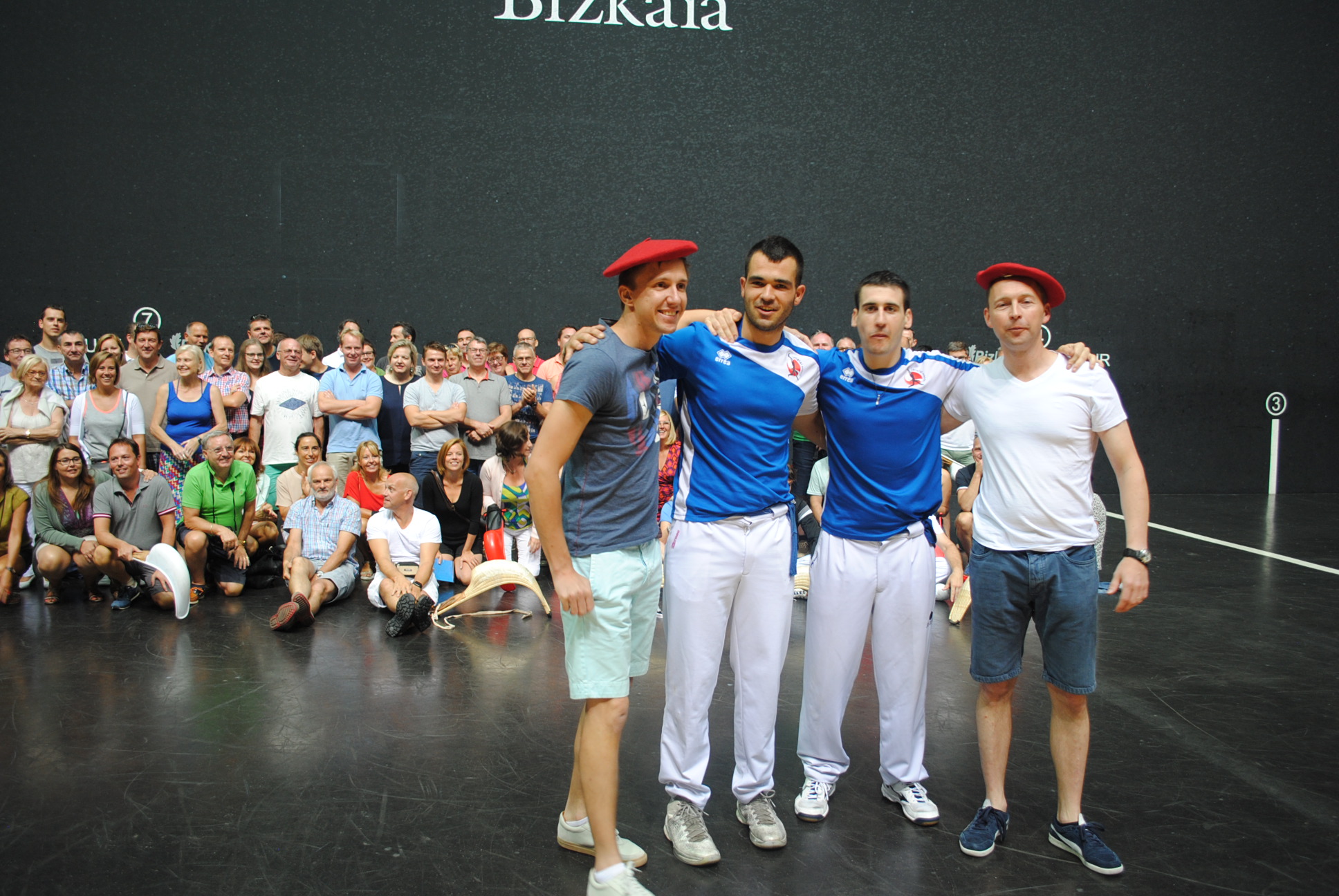 Este domingo  11 de septiembre, 88 empresarios Belgas, nos han visitado en el frontón Bizkaia, para aprender sobre la pelota vasca y practicarla.