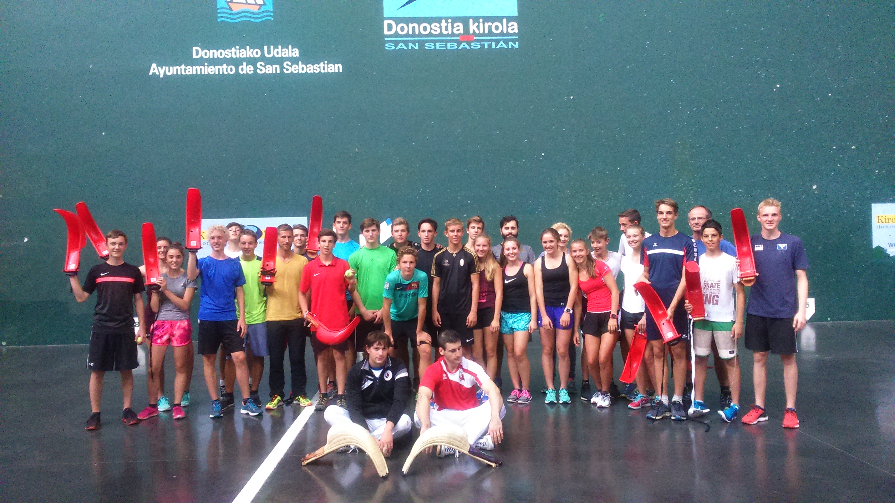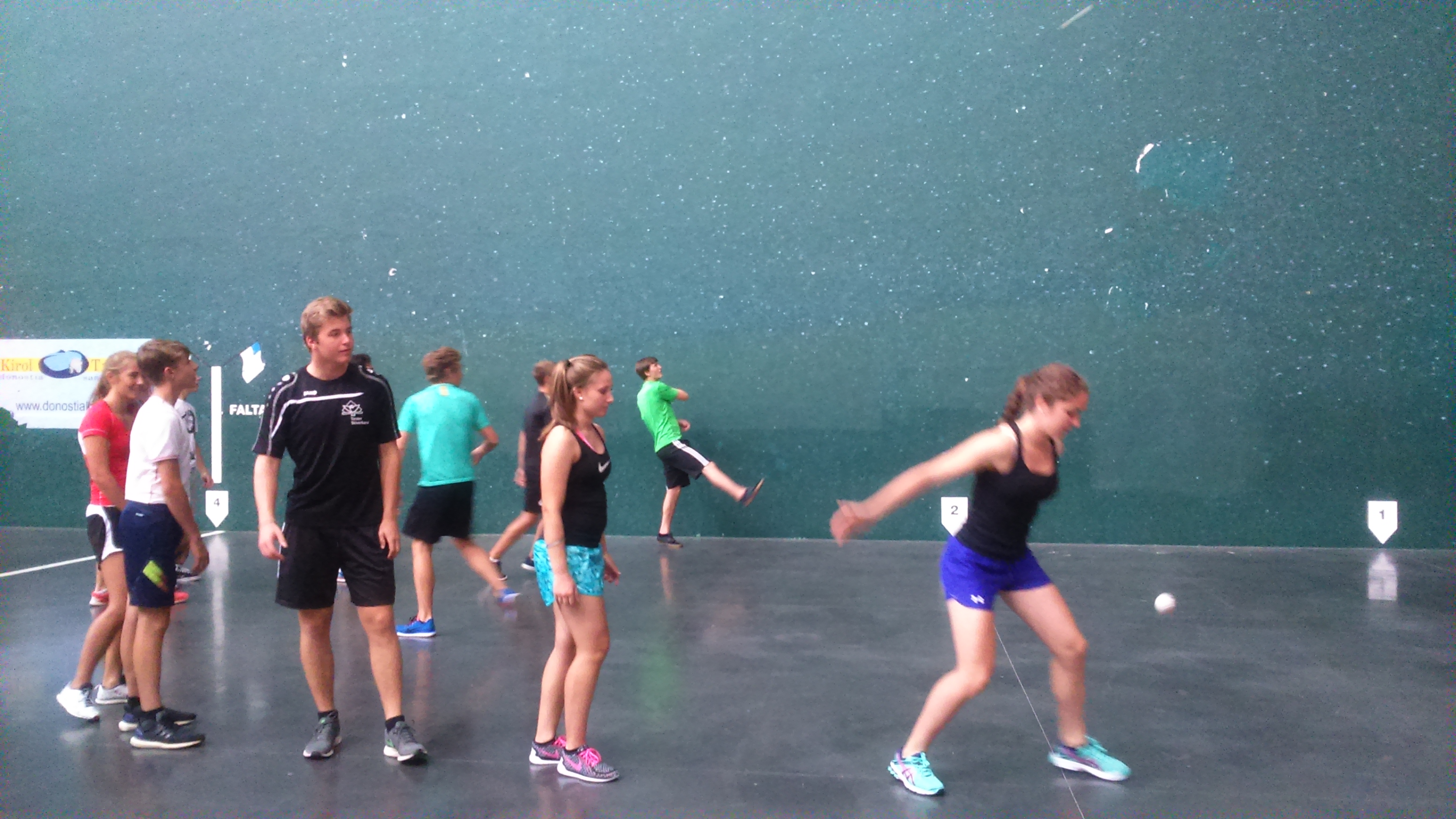 Austriako Tiroleko kirolari talde bat izan genuen Balda frontoian euskal pilotara jolasten.