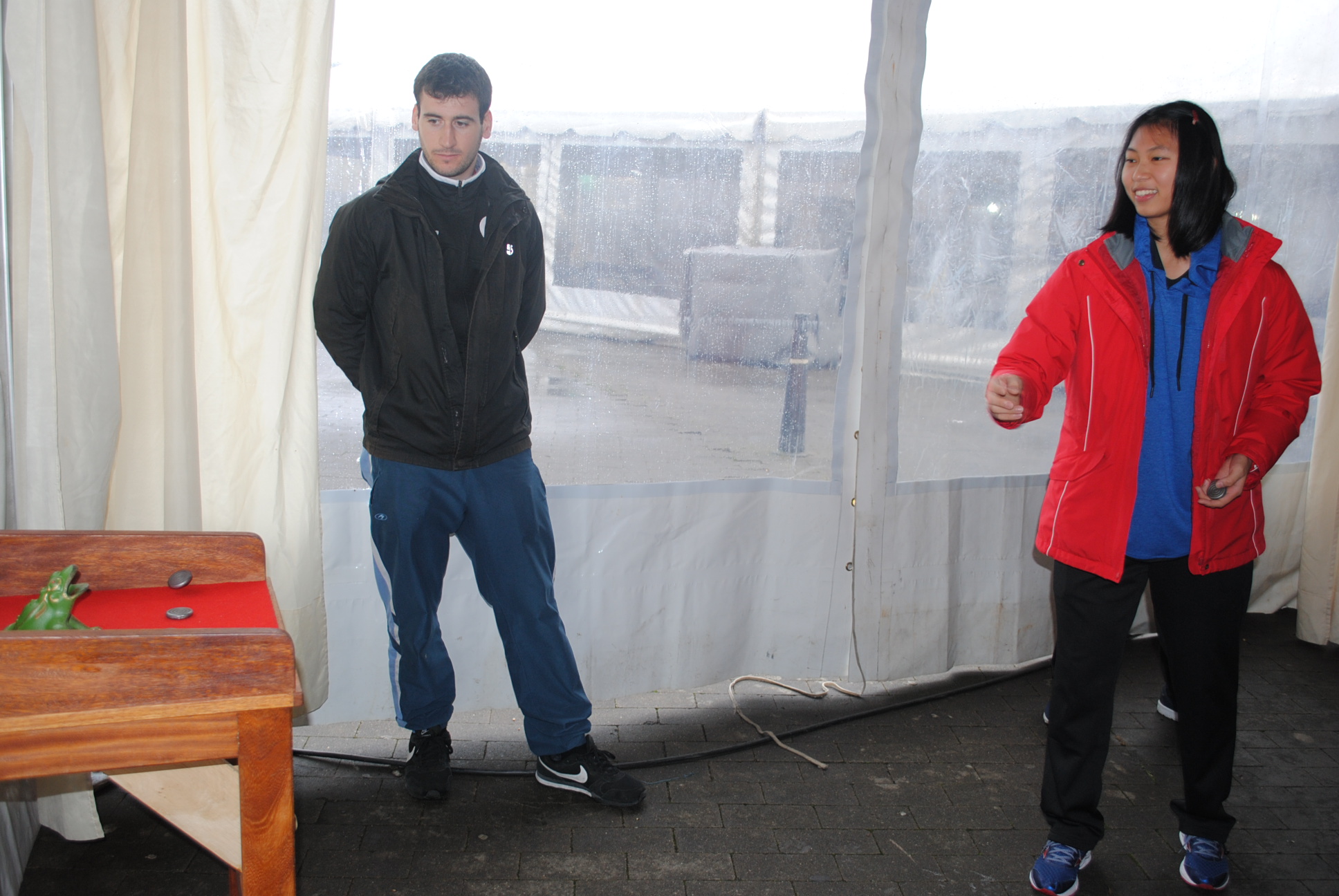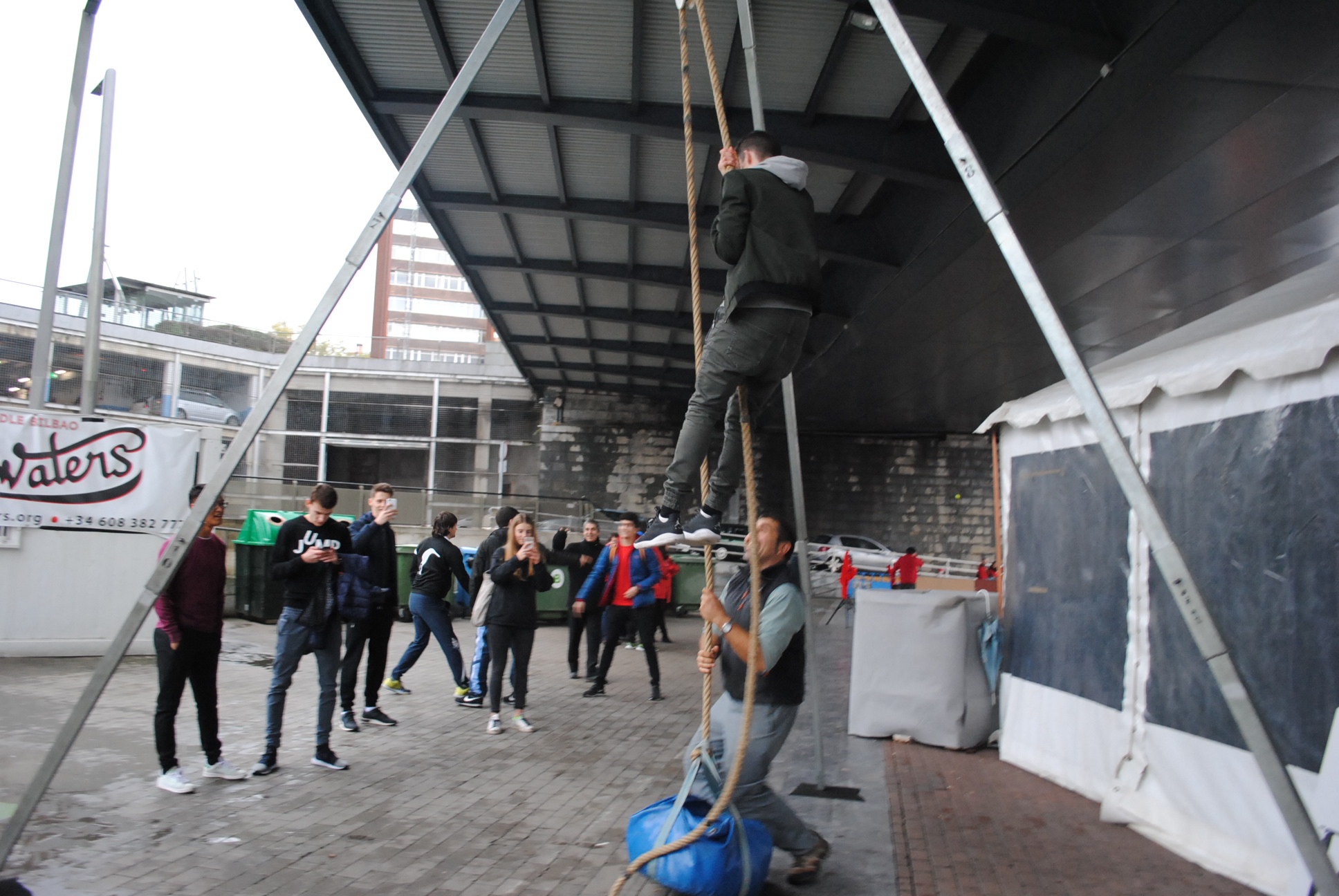 600 parte hartzaile dabiltza egun hauetan Bilbotik zehar eta atzo herri kiroletan eta baserri jolasetan jardun ziren, euren atseden eguna baitzen. Badminton jokuan abilezia eta edertasuna erakusten digute eta atzoko kasuan, indarra eta trebetasuna agertu zuten: harria jasotzen, sokatiran, lokotxak biltzen, trontzan, lasto jasoketan, igela-jolasean, txingak eramaten eta boloetan.