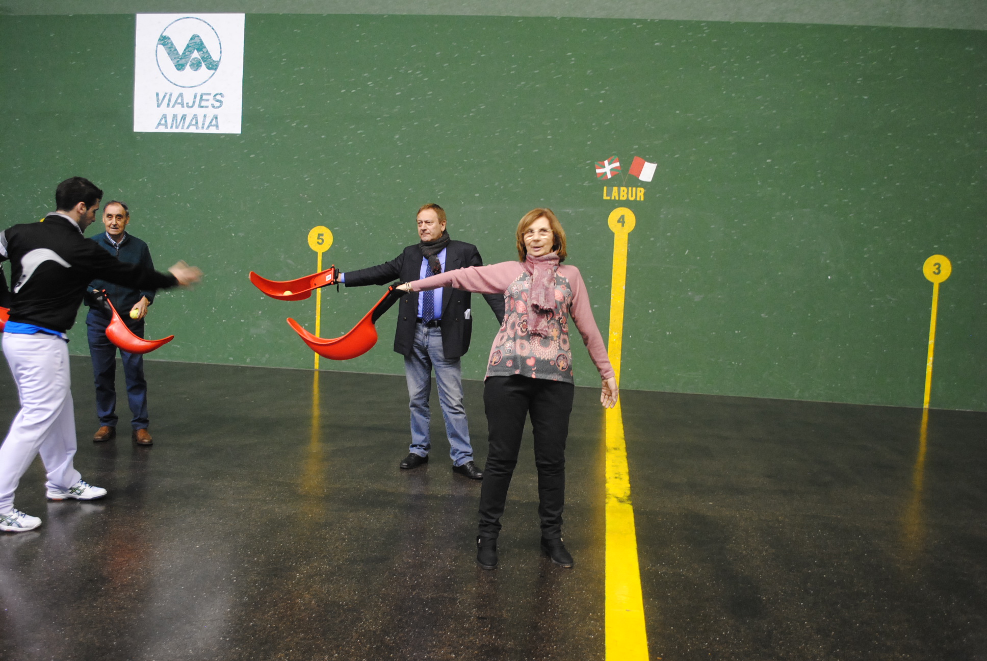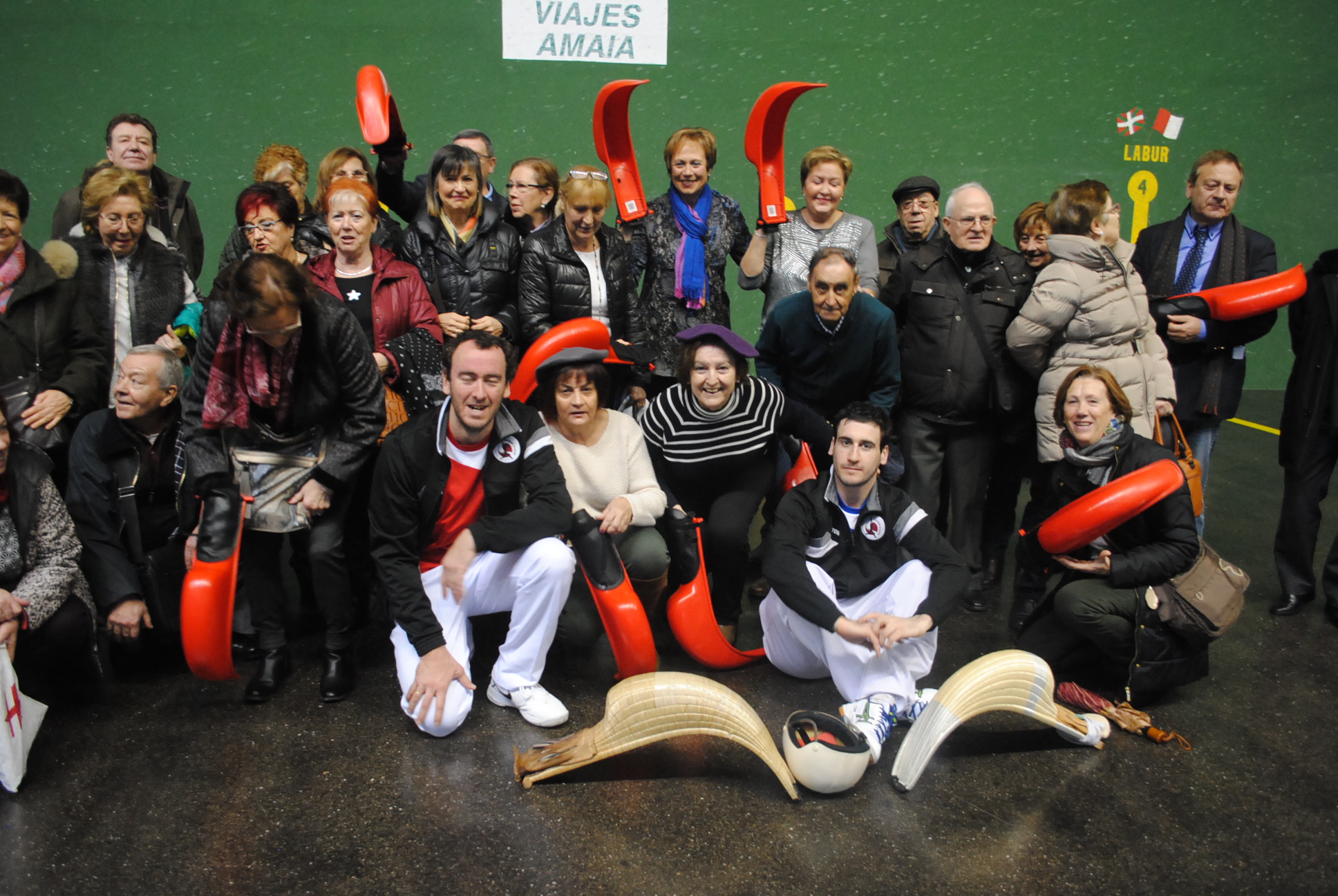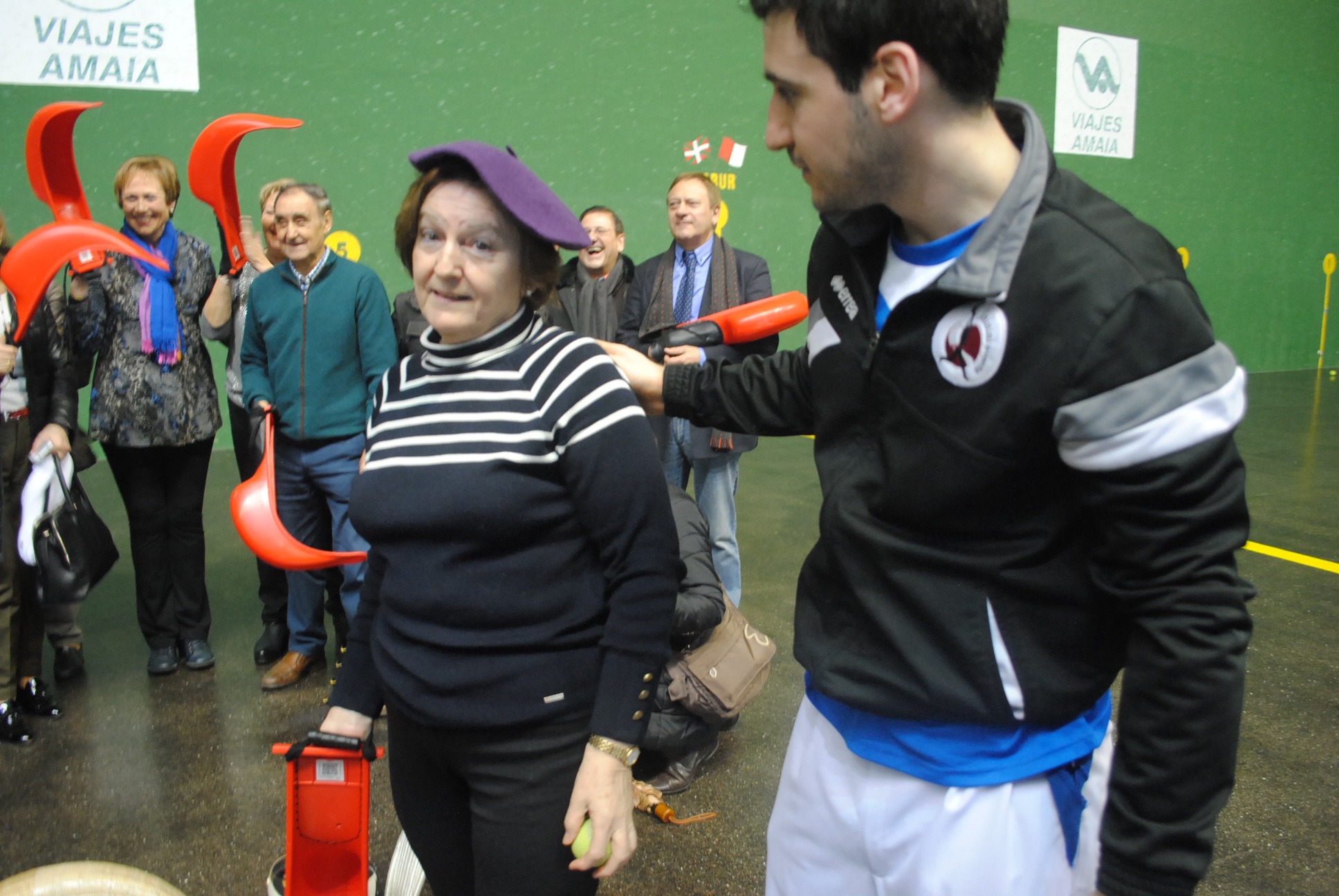 Jarraian zesta-punta erakusketan gogotsu ikusi genituen eta nola ez, kantxara jaitsi eta pilotarien laguntzaz kirolean jardunteko aukera ere izan zuten.